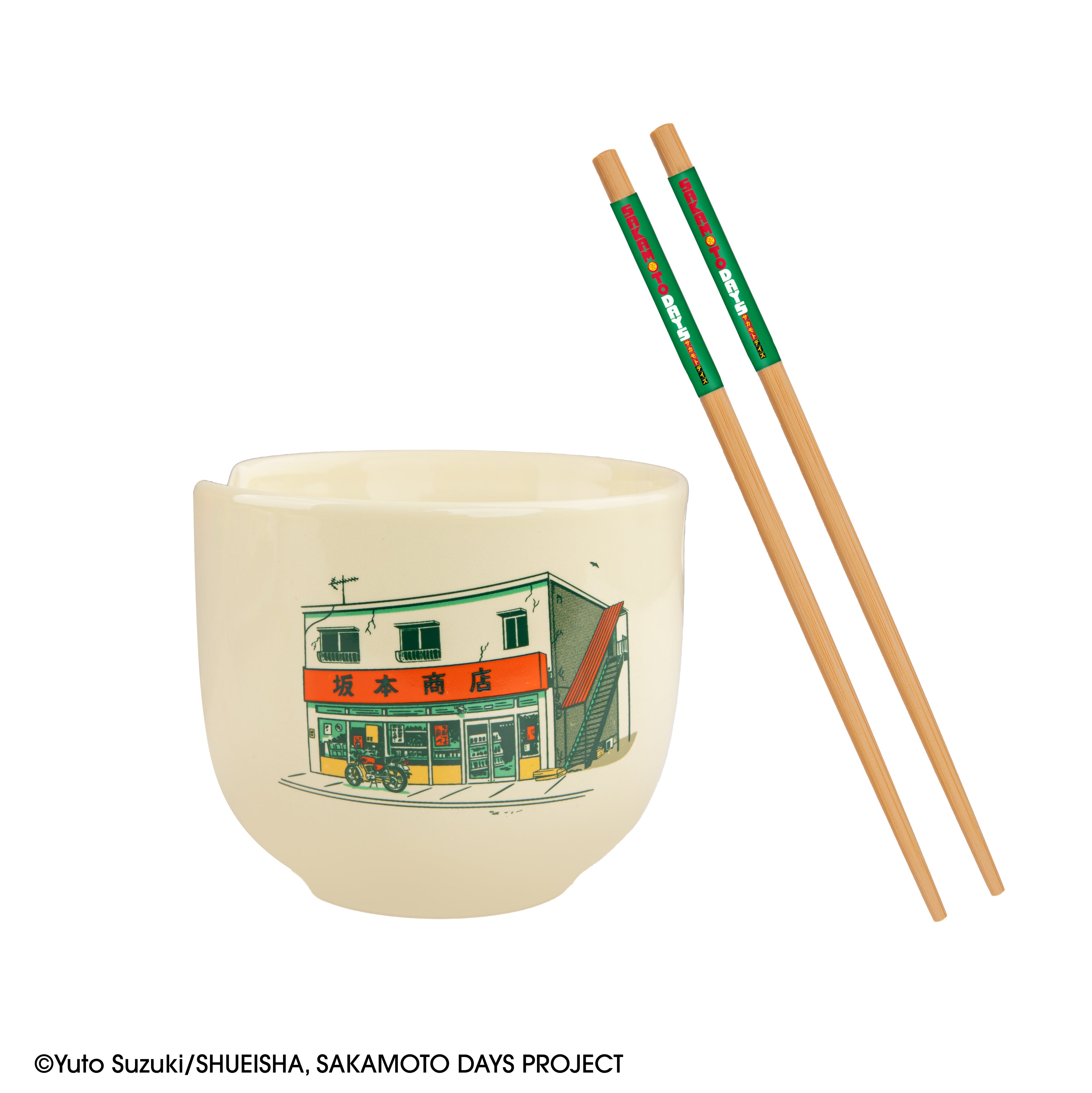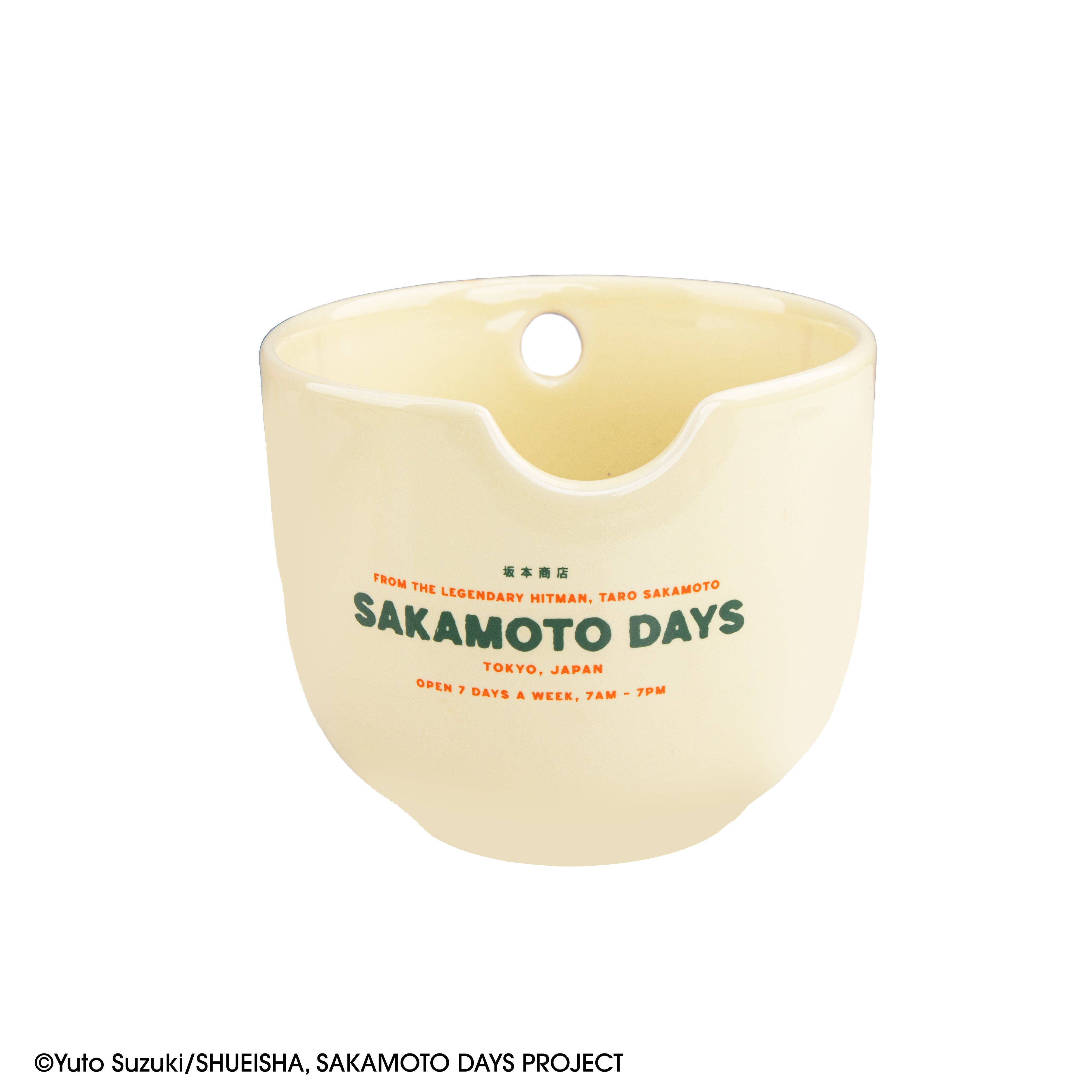 Pour rappeler la tentative de Sakamoto de mener une vie normale, ce bol est décoré d'un croquis de sa supérette, où se déroule l'action de cette histoire. De l'autre côté, le titre « Sakamoto Days » est inscrit en caractères gras pour compléter l'ensemble avec un charme mortel.