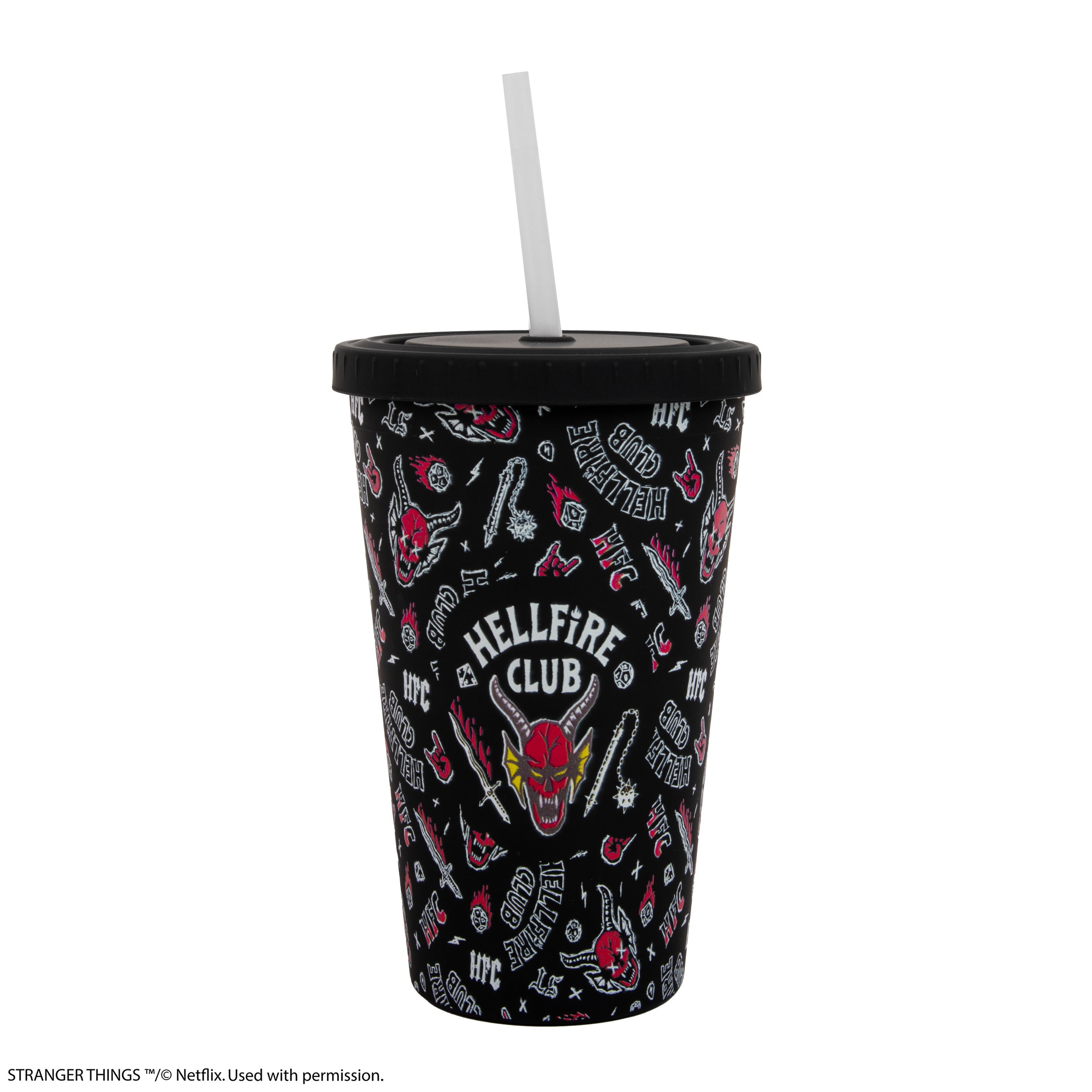 Découvrez le tumbler Hellfire Club, le compagnon idéal des fans de Stranger Things. Fabriqué en plastique et polypropylène résistants, ce modèle de 475 ml arbore un design dynamique orné d’icônes vibrantes à l’effigie du Hellfire Club, apportant une touche audacieuse à votre collection. Sa forme pratique s’adapte facilement aux porte-gobelets et se glisse dans un sac, pour garder votre boisson préférée toujours à portée de main.