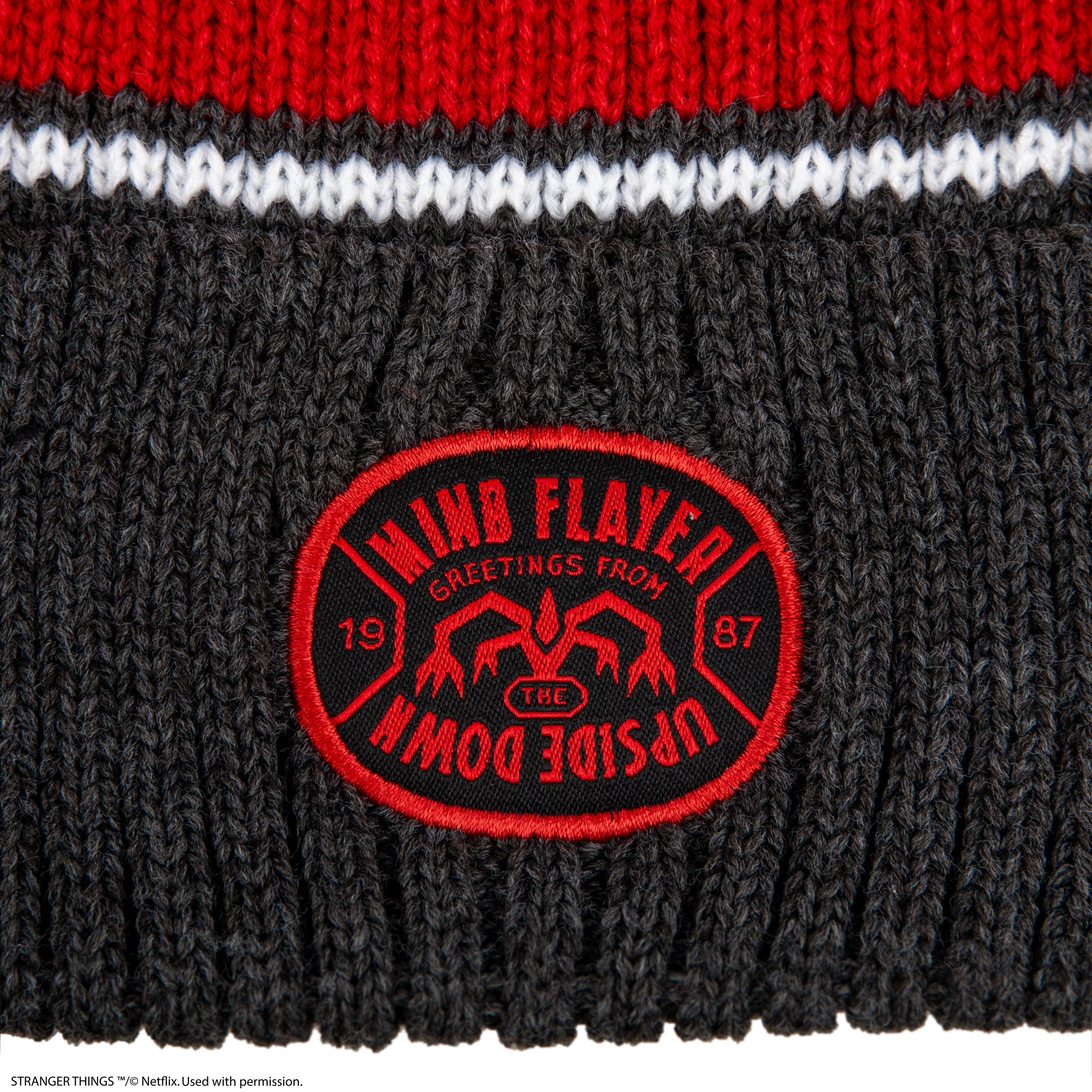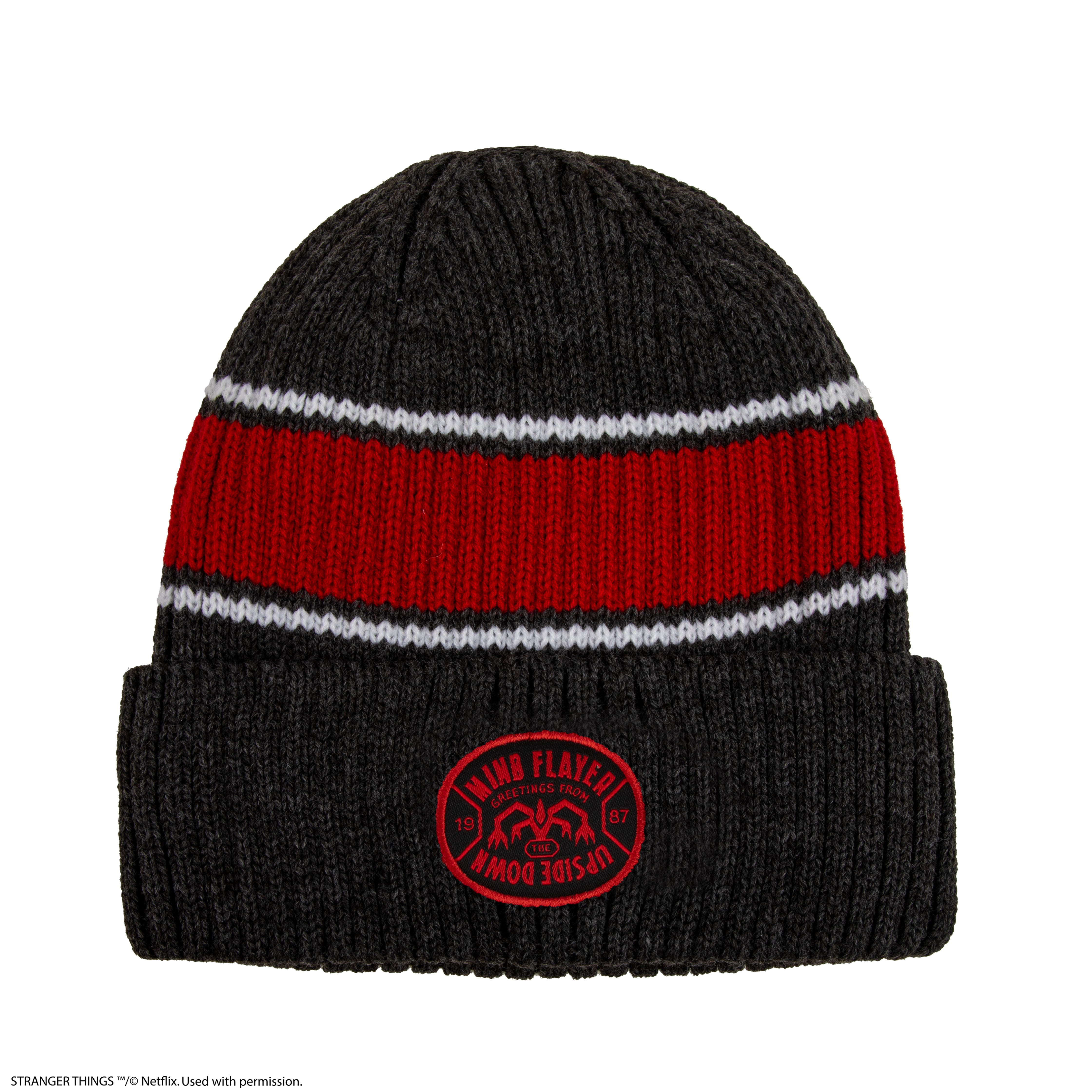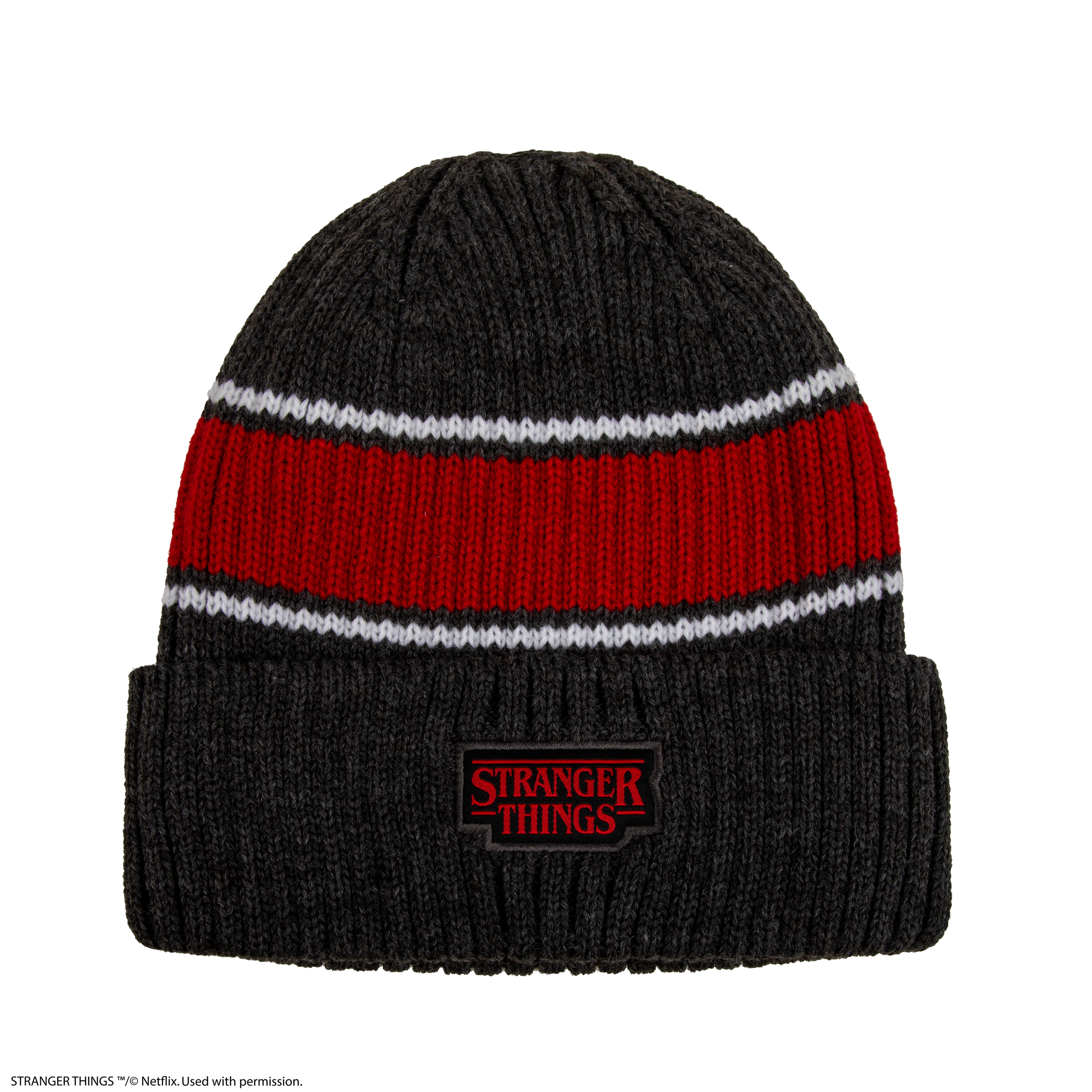 Apportez une touche sombre à votre style hivernal avec ce bonnet Stranger Things. Conçu dans des tons sombres classiques avec des rayures rouges et blanches saisissantes, il est orné d'un patch brodé Upside Down (Monde à l'envers) qui affiche instantanément votre passion avec assurance.