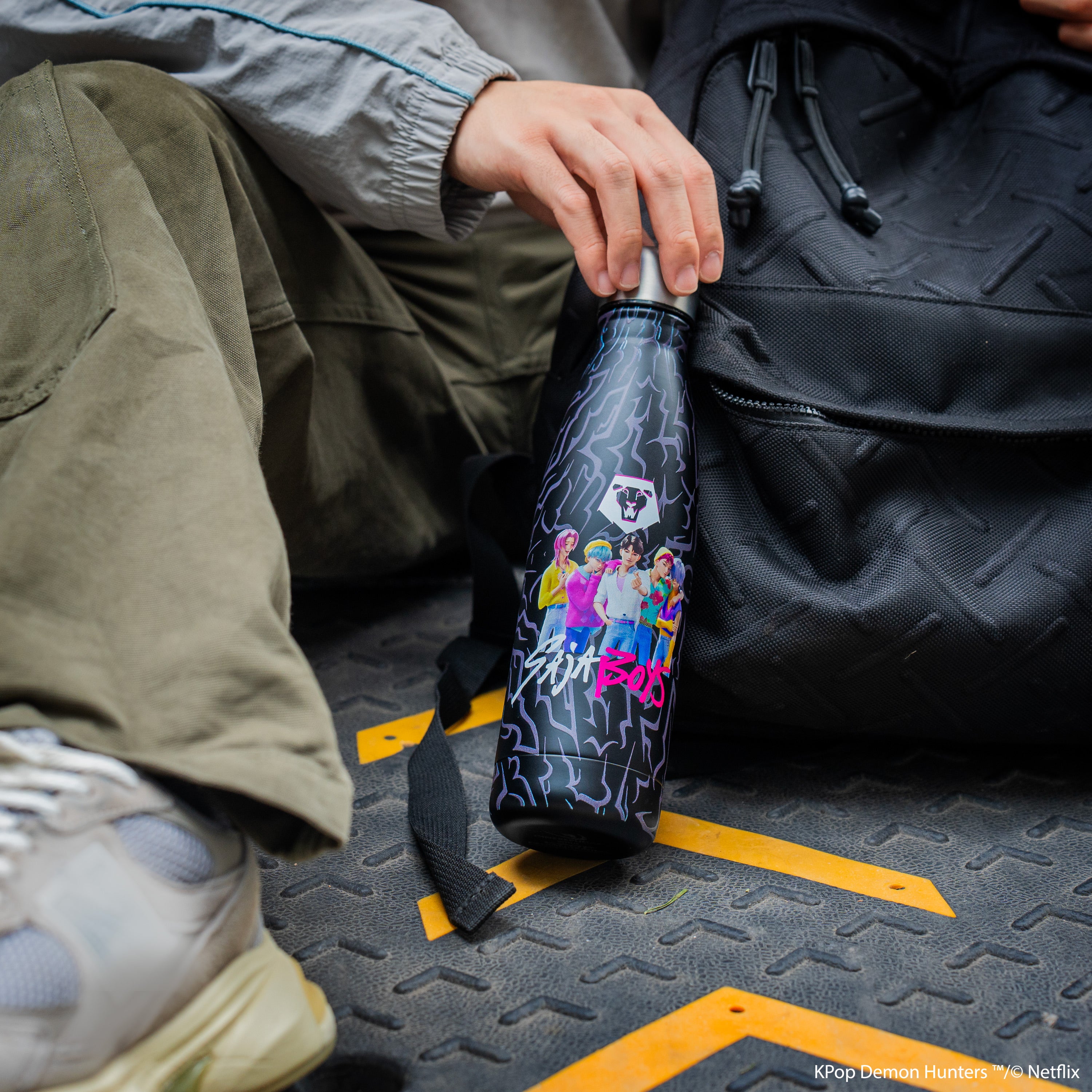 Affirmez votre style avec la Gourde Isotherme Saja Boys, inspirée des charismatiques Saja Boys de KPop Demon Hunters. Arborant un design sombre et audacieux, inspiré des motifs démoniaques, et une finition élégante en acier inoxydable, cette gourde isotherme reflète toute la puissance visuelle et l’esthétique K-pop moderne du groupe et des ses membres Jinu, Mystery, Romance, Abby et Baby.