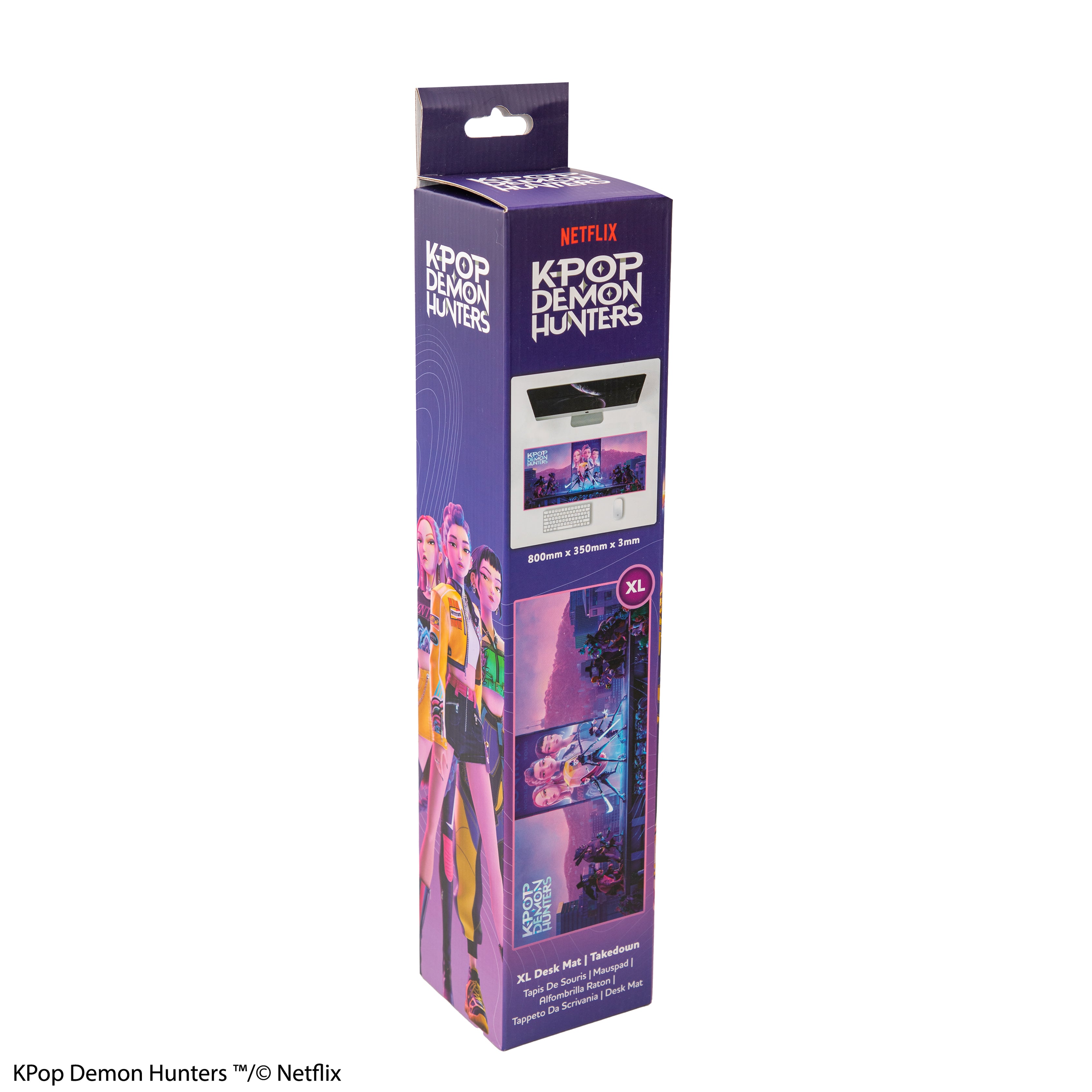 Le Tapis de bureau Takedown vous plonge directement au cœur de l’action de KPop Demon Hunters. Avec sa scène de combat spectaculaire et son ambiance urbaine néon intense, ce design capture un moment clé figé dans le temps. Rejoignez Rumi, Mira et Zoey dans leur lutte contre les démons tout en créant un setup de bureau véritablement légendaire.
