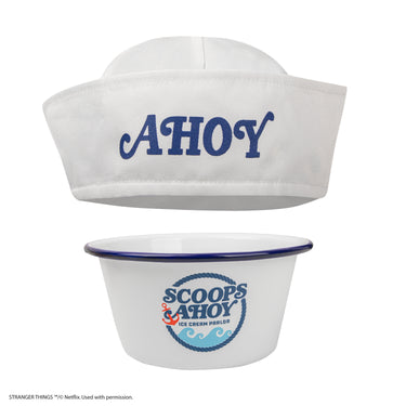 Mettez les voiles avec notre collection Scoops Ahoy, un clin d'œil nostalgique à l'été inoubliable de Steve et Robin au Starcourt Mall. Notre gamme exclusive comprend tout ce dont vous avez besoin pour recréer l'aspect et l'ambiance de l'emblématique magasin de glaces : Costumes Scoops Ahoy, chapeaux de marin, tabliers, coupes à glace, distributeurs de serviettes, gobelets en papier, verres à milkshake et même une cuillère à glace. Parfaite pour les fêtes à thème, pour Halloween ou pour les fans qui aiment l'esthétique rétro des années 1980 de la série, cette collection donne vie au magasin de desserts préféré de Hawkins.