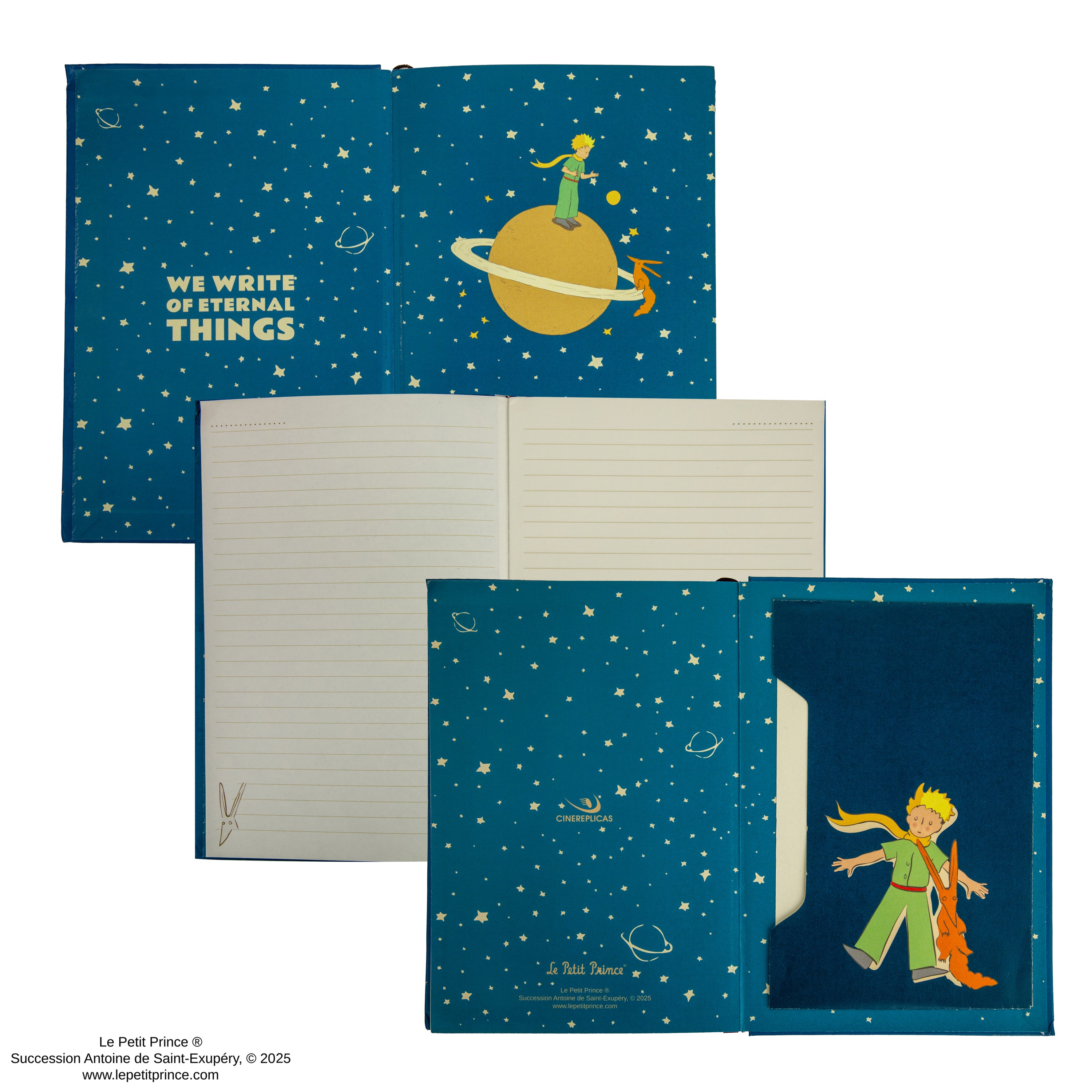 Inspiré par l’univers poétique du Petit Prince, ce set de papeterie réunit trois pièces délicatement pensées pour offrir une expérience douce et étoilée. Habillés d’un élégant vert canard et parsemés d’étoiles dorées, chaque élément invite à faire une pause, à réfléchir et à laisser place au rêve.