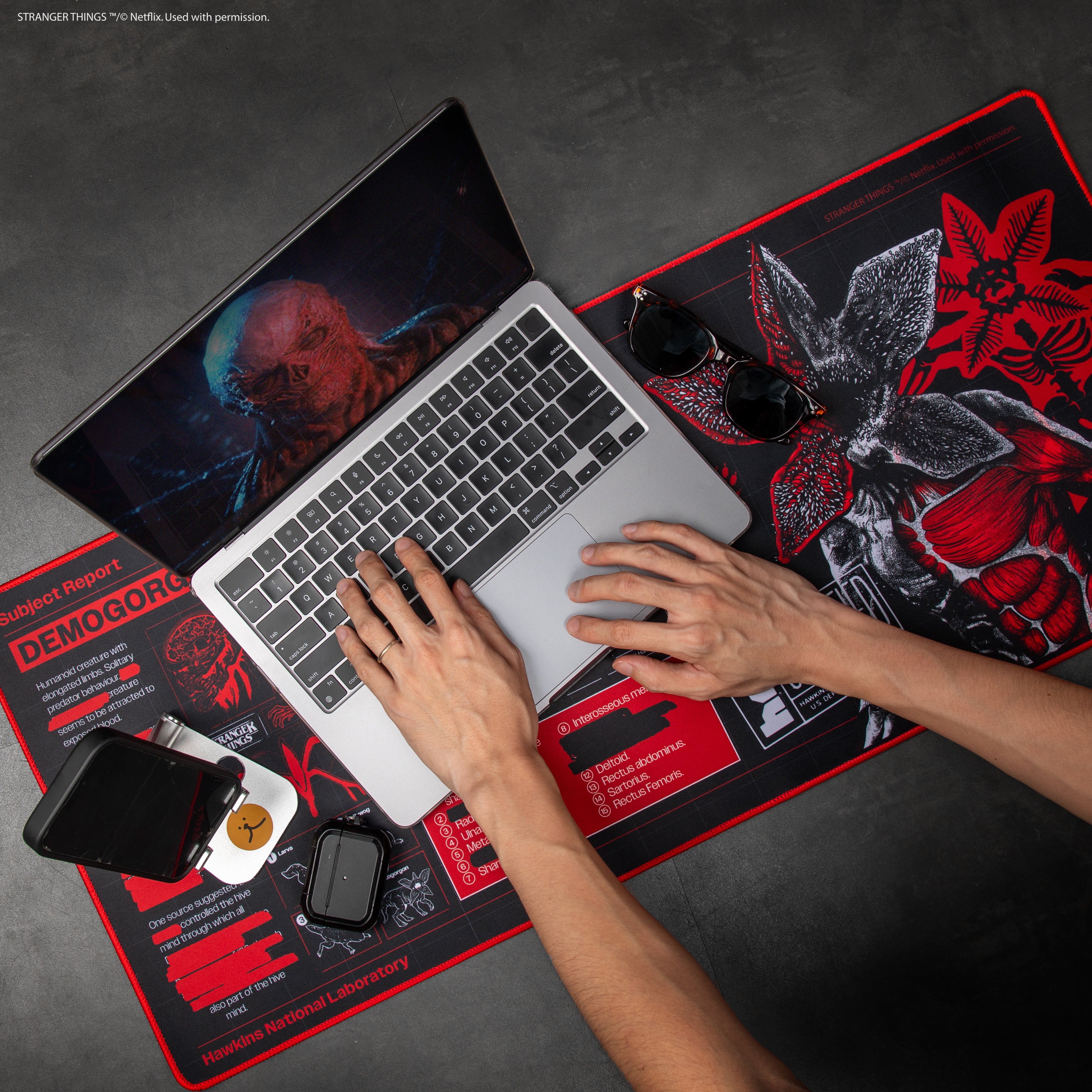 Accédez au rapport classifié sur le Démogorgon grâce à notre tapis de bureau ! Ce tapis détaille les découvertes sur la physiologie et le comportement menaçant de la créature. C'est un accessoire mémorable pour les fans qui apprécient l'univers sombre de la série, transformant votre bureau en un laboratoire de recherche secret.