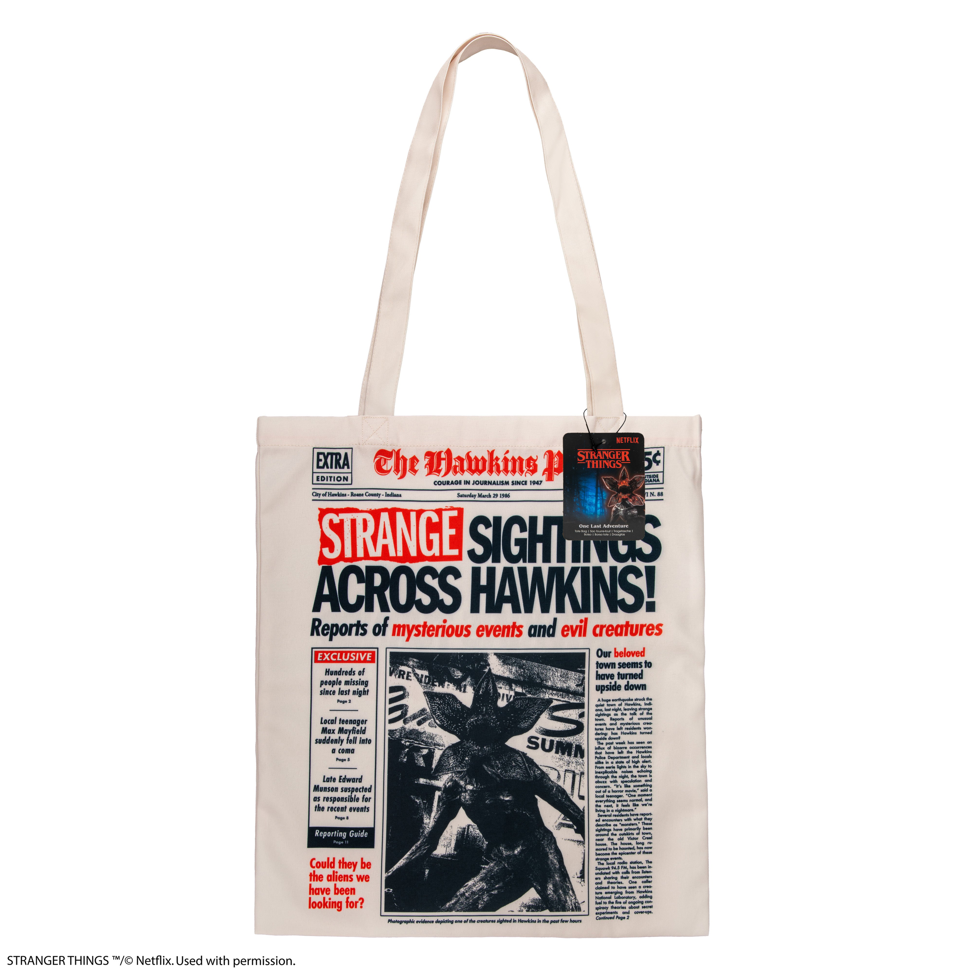 Découvrez les mystères de Hawkins avec ce tote bag exclusif Stranger Things « The Hawkins Post ». Orné d'une image inquiétante d'une créature sous des titres vintage audacieux, ce sac fourre-tout provient directement du cœur de l'Upside Down.